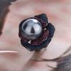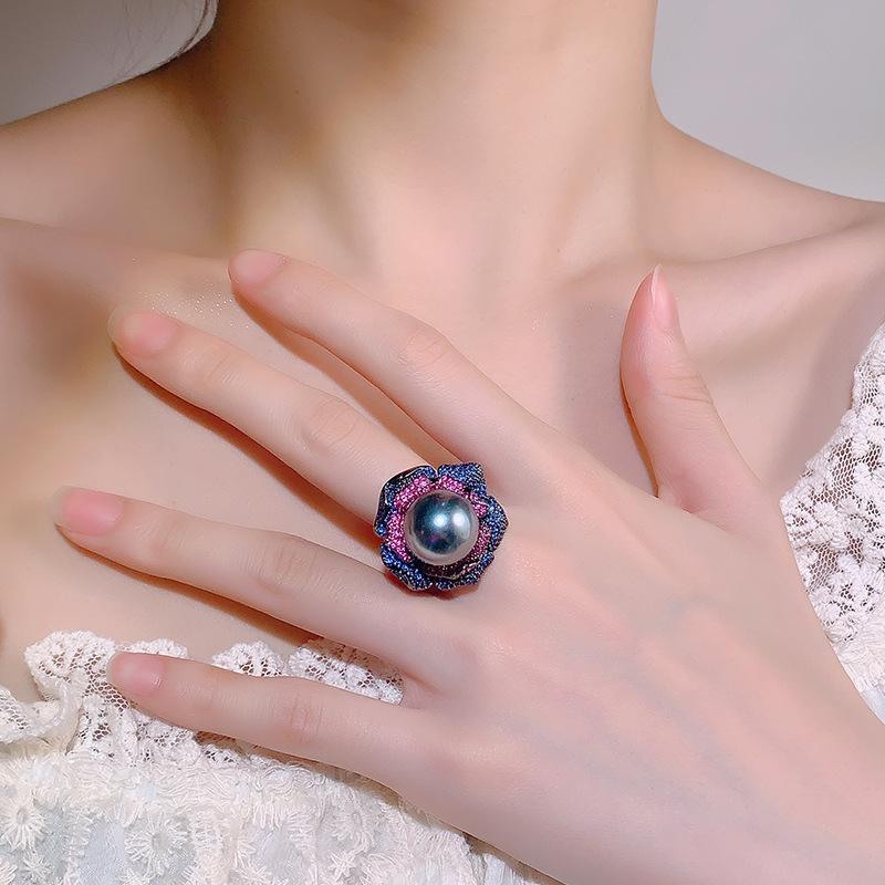 Стильная атмосфера трехмерное кольцо с цветочным жемчугом, австралийские белые желтые бусины, серые бусины, открытое кольцо, слегка оправленное в красные и синие бриллианты