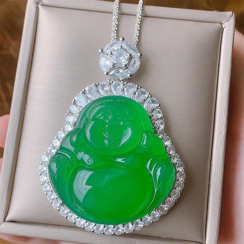 Ювелирные изделия Зеленый Халцедон Белый Халцедон Смеющийся Будда Гонг Китайские аксессуары Национальный стиль Майтрейя Ожерелье Подвеска