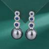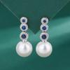 Серьги-гвоздики с микрозакрепкой из голубого циркония в серебре S925, женские индивидуальные украшения, серьги с белым жемчугом в виде ракушки, роскошные серьги с жемчугом в стиле «темперамент»