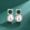 Изумрудные циркониевые жемчужные серьги с серебряными иглами, серьги-пусеты из имитации натурального пресноводного жемчуга, серьги-подвески с жемчугом, серьги-пусеты с жемчугом 12 мм