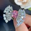 Комплект ожерелье серьги кольцо девичье сердце розовый бриллиант прозрачный сладкий свет роскошь универсальный премиум женские украшения