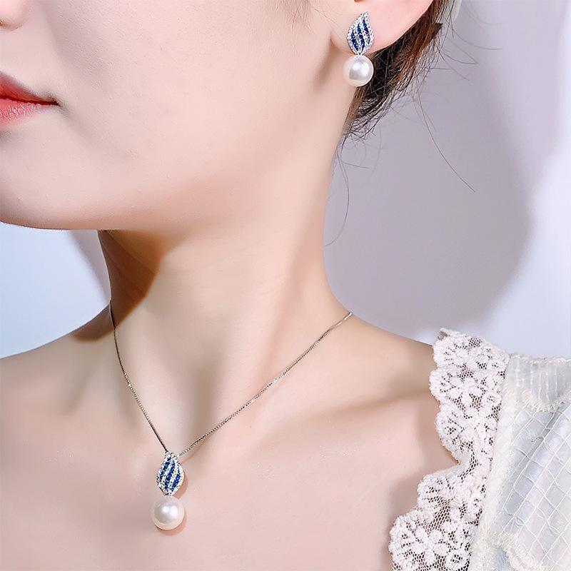 Осенние и зимние украшения, комплект из жемчуга, имитация натурального жемчуга, королевский сапфир, ожерелье, серьги-гвоздики