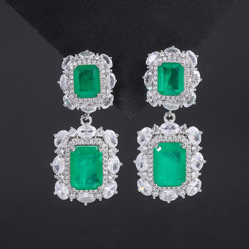 S925 Серебряная игла Популярная имитация ювелирных изделий Комплект аксессуаров Изумрудный из трех предметов Модный женский