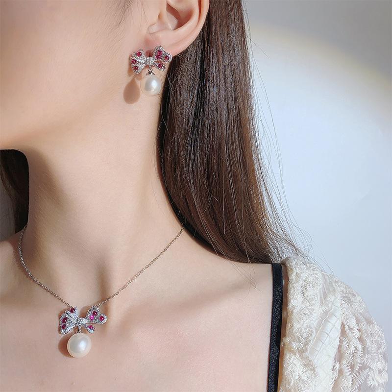 Жемчужный комплект, ожерелье, серьги, украшения в форме банта, фиолетовый свет изменит цвет, красный корунд светлый роскошные женщины — купить товар онлайн с бесплатной доставкой до всему миру!