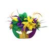 Украсьте свою вечеринку Марди Гра нашей изысканной маской! Эта маска, идеально подходящая к контурам женского лица, обеспечивает устойчивость и комфорт благодаря эластичным лямкам.. Когда он не используется, он также служит великолепным украшением стены.. Эта маска, украшенная блестящими перьями ярких зеленых, желтых и фиолетовых оттенков, излучает атмосферу праздничного карнавала.. Добавление ярких искусственных цветов придает изделию дополнительную элегантность, делая его ярким аксессуаром для любого случая.
