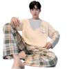 Коллекция мужских пижам Осень-зима Клетчатая однотонная студенческая пижама, домашняя одежда, топы и брюки, пижамы, одежда для отдыха