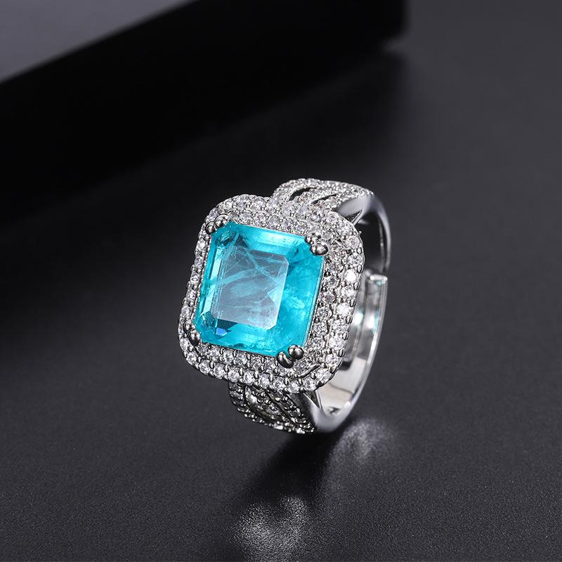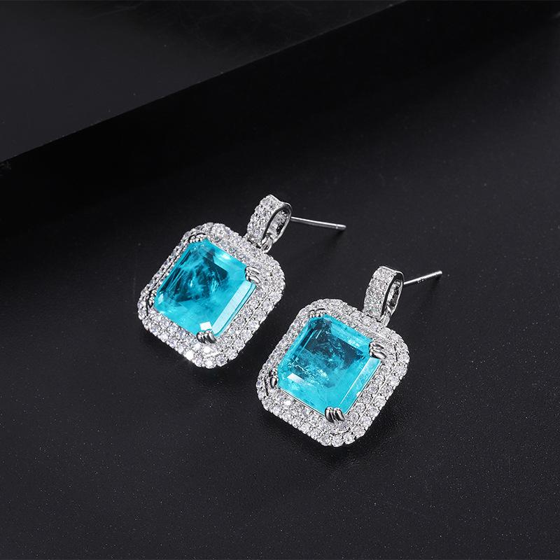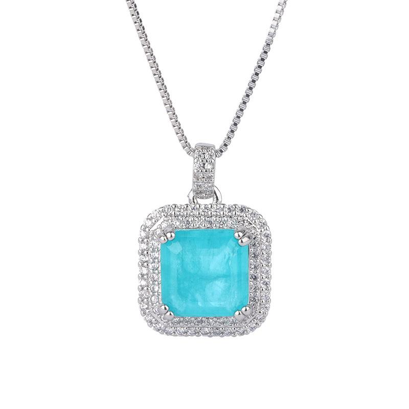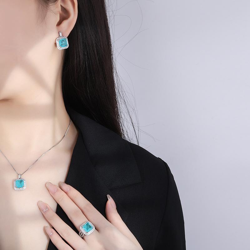 Ожерелье из драгоценных камней, микробриллиантовая имитация параиба, синие квадратные серьги-гвоздики, кольцо-подвеска