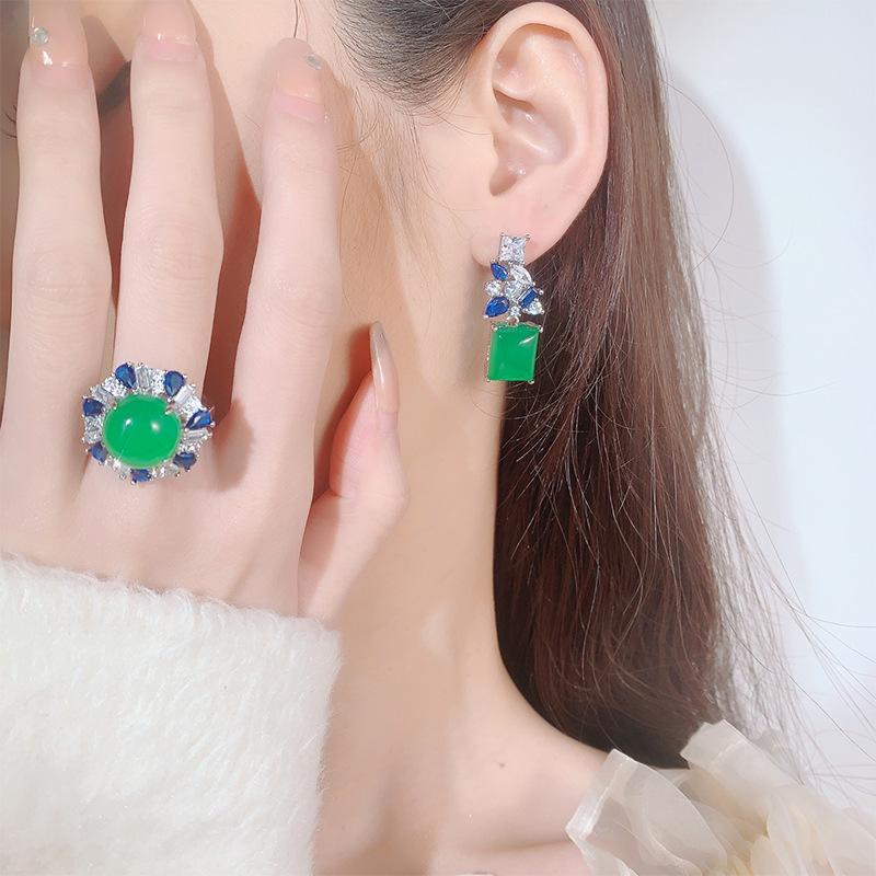Комплект ювелирных изделий из чистого серебра 925 пробы, серьги-иглы, кольцо с имитацией халцедона, комплект из двух колец и сережек для женщин