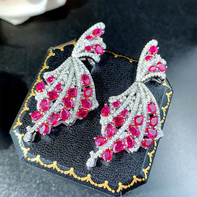 Осень и зима новые серьги ювелирные изделия мода веерные цветочные серьги красные корунды слегка инкрустированные цирконием серьги женские