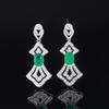 Новые серьги-гвоздики, имитация натурального изумруда, серьги из циркония, слегка инкрустированные бриллиантами, легкий роскошный дизайн, маленькие серьги-юбки