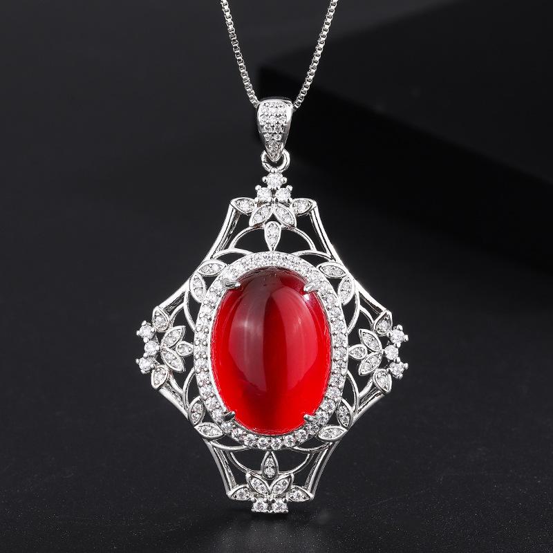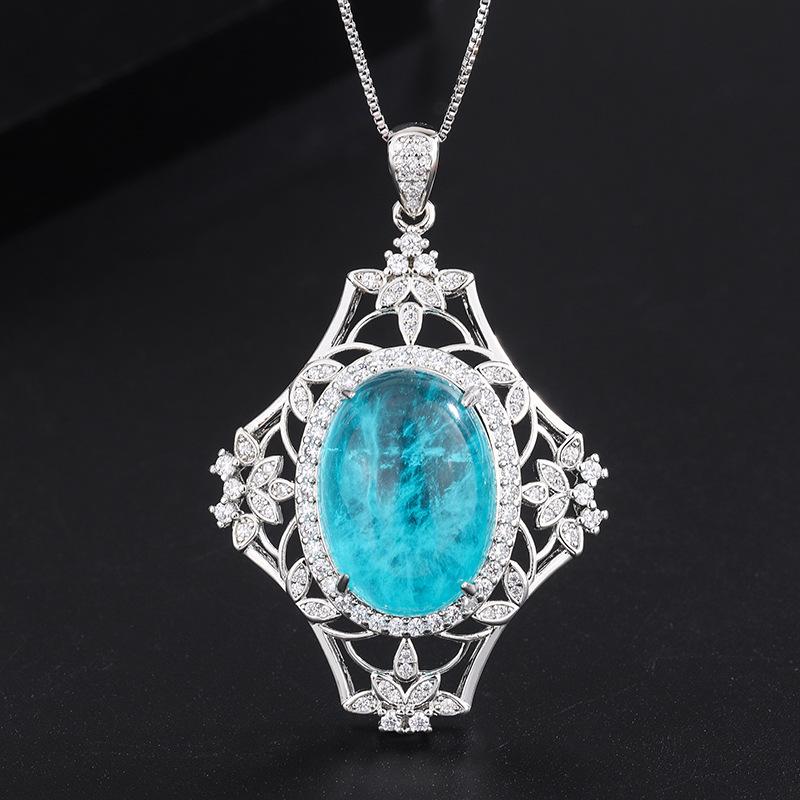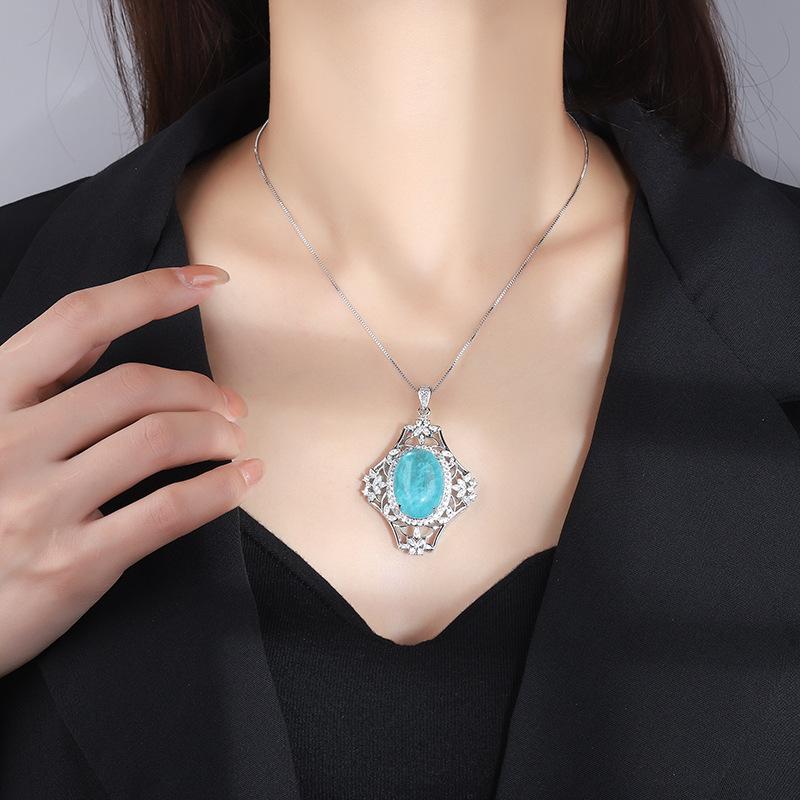Новая подвеска из голубого циркона Параиба летом 2024 года, ретро-колье из красного циркона.