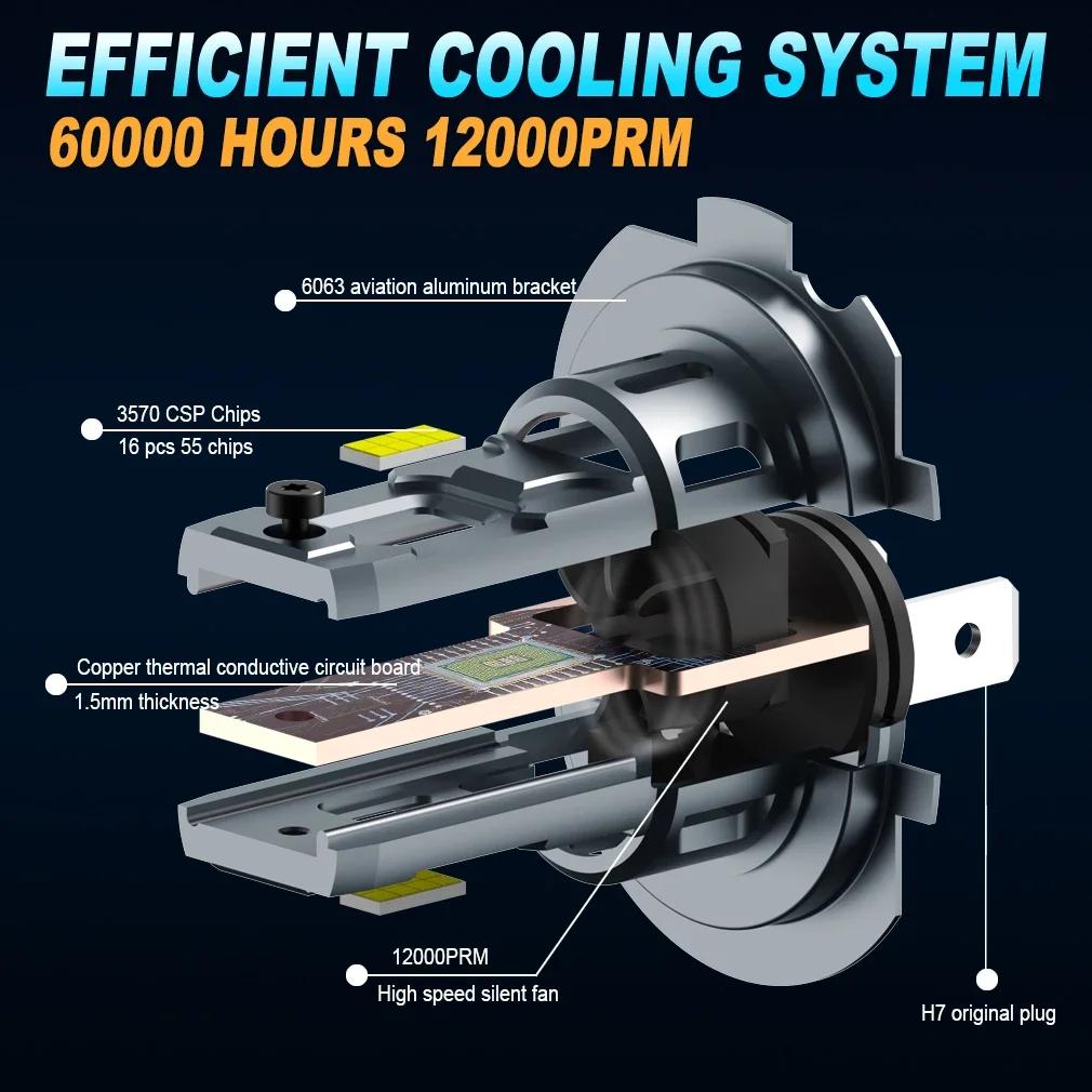 6500K 20000LM Мини H7 Светодиодная лампа для фары Беспроводная 120 Вт CSP для автомобильной фары Автомобильные диодные лампы H7 Turbo Led 12 В