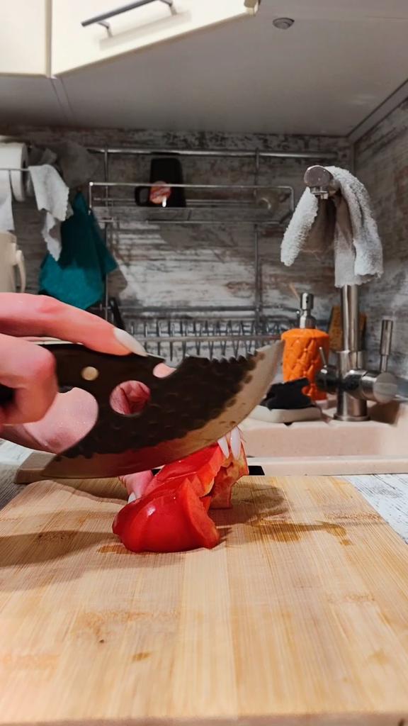 Нож 🔪 Всем солнечный приветик 👋😉 Кто ест в моём ТГ канале, знают, что я сейчас активно покупаю на свою квартиру нужные и необходимые в быту товары ☺️ И в том числе хочу, чтобы у меня были разнообразные ножи Когда увидела этот, не смогла пройти мимо 😃 Добротный, острый, интересной формы, небольшой, аккуратный и им много что можно нарезать 😉 ✔️ мясо ✔️ курицу ✔️ рыбу ✔️ овощи ✔️ фрукты. Пока нарезала им овощи, но уверена, что и с мясом он справится на ура 👌 Качество: 🔪 материал: нержавеющая сталь 🔪 материал ручки твёрдое дерево 🔪 общая длина около 20 см 🔪 длина клинка около 14 см 🔪 толщина 2,5 мм 🔪 удобный в руке 🔪 острый 🔪 приходит в коробке 🔪 есть чехол для лезвия из плотной искусственной кожи с кнопками 🔪 на острых концах налеты пластиковые стопоры 🔪 качество отличное. Я покупкой довольна очень-очень ❤️ Спасибо, продавцу и Джуму 😘 Чмок всех кто со мной на Джуме 😘 Желаю удачных покупок 🛍😊 терпения и весны в душе 🤗 До скорого 🙌😊