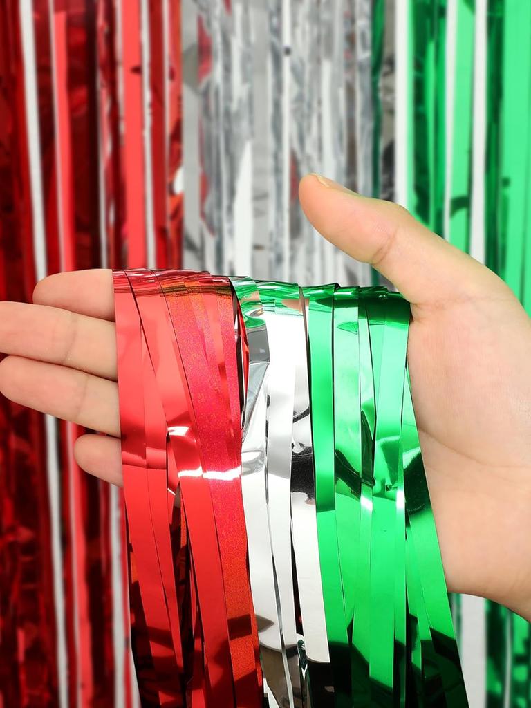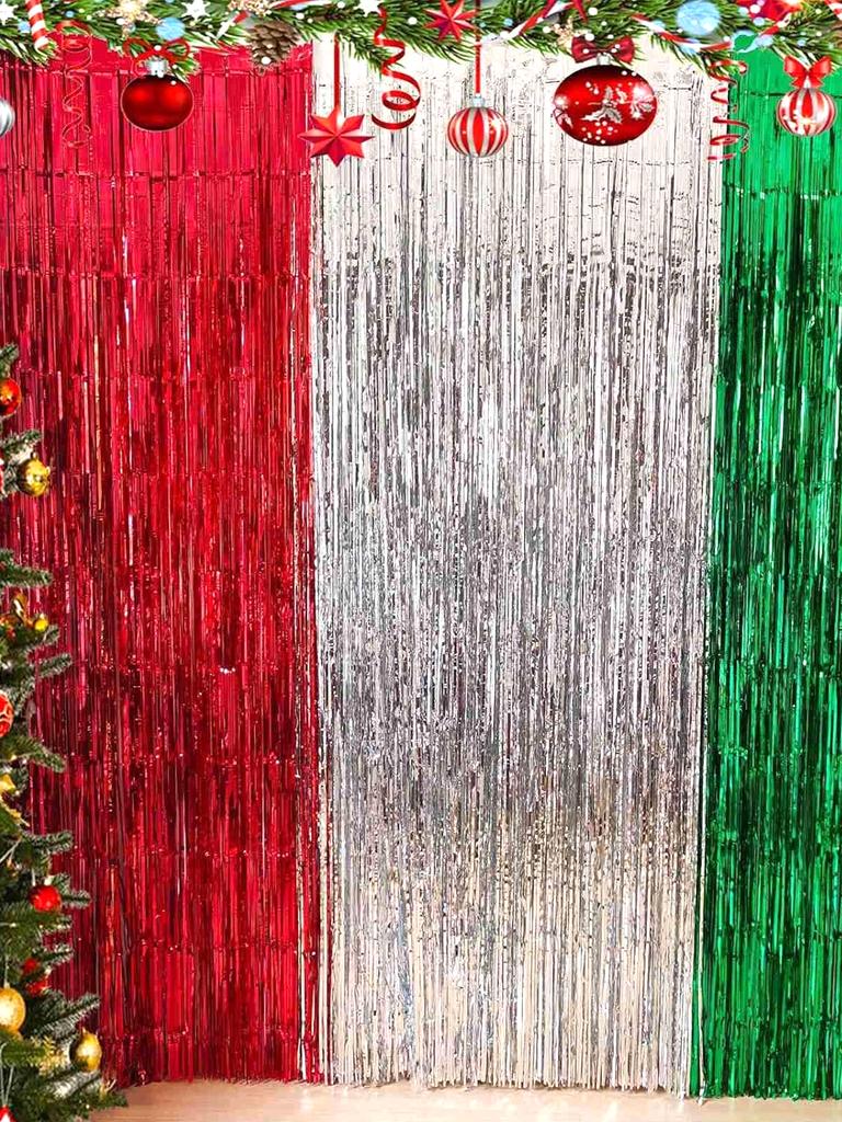 Рождественская занавеска с кисточками, украшение для рождественской вечеринки, 1x2 м, красная, серебристая, зеленая, блестящая, кисточка для вечеринки, фон для вечеринки