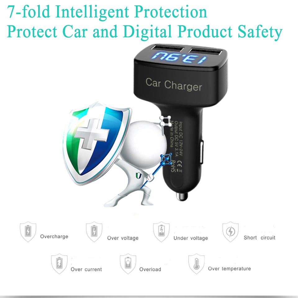 Автомобильное зарядное устройство 4 в 1, быстрая зарядка 3,1 А, двойной USB-дисплей, ЖК-дисплей с датчиком температуры/напряжения/тока, адаптером-тестером, цифровой дисплей