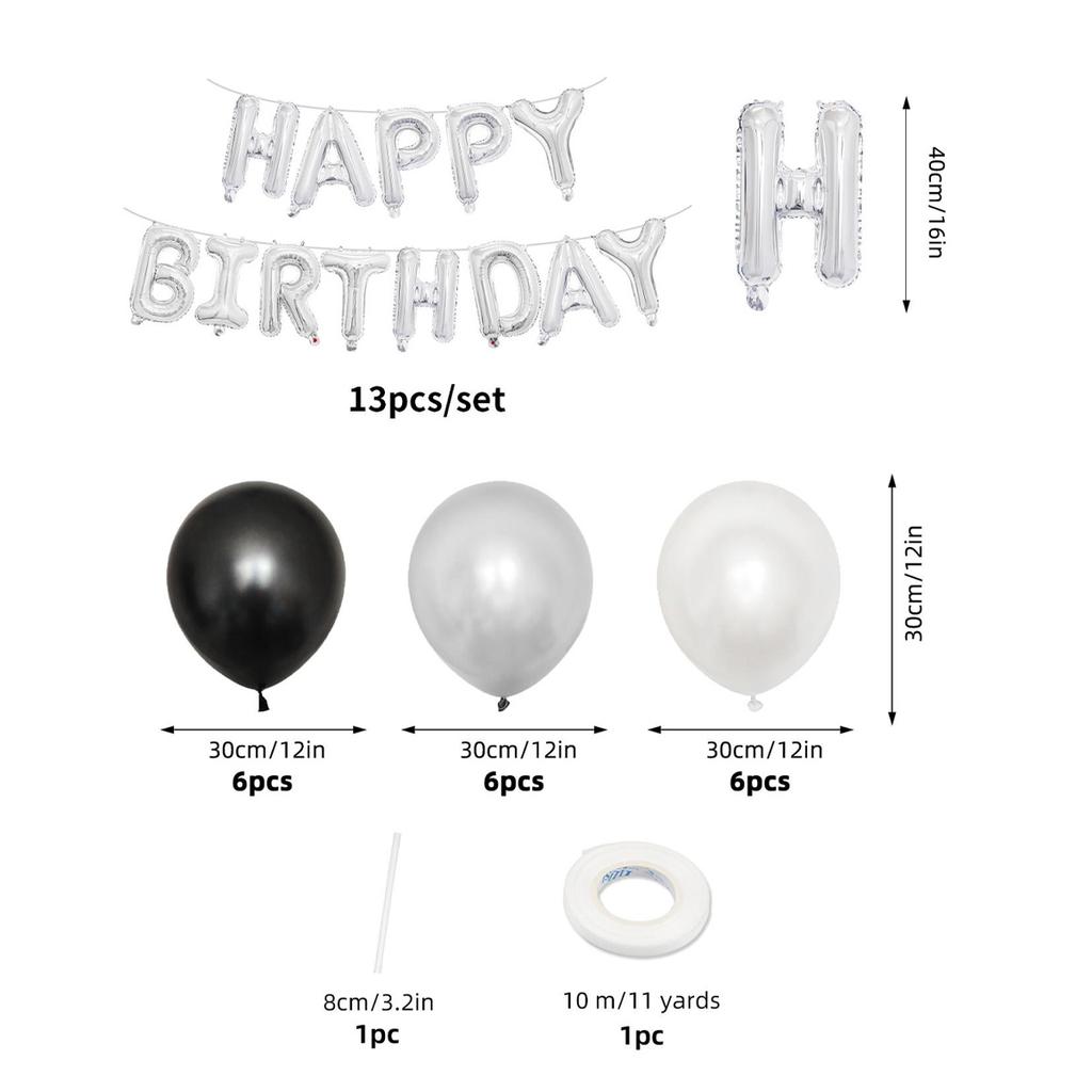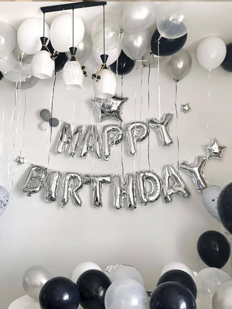 Набор из 33 черных и белых серебряных воздушных шаров «С днем рождения», композиция для вечеринки «С днем рождения», украшение фона для семейной вечеринки,