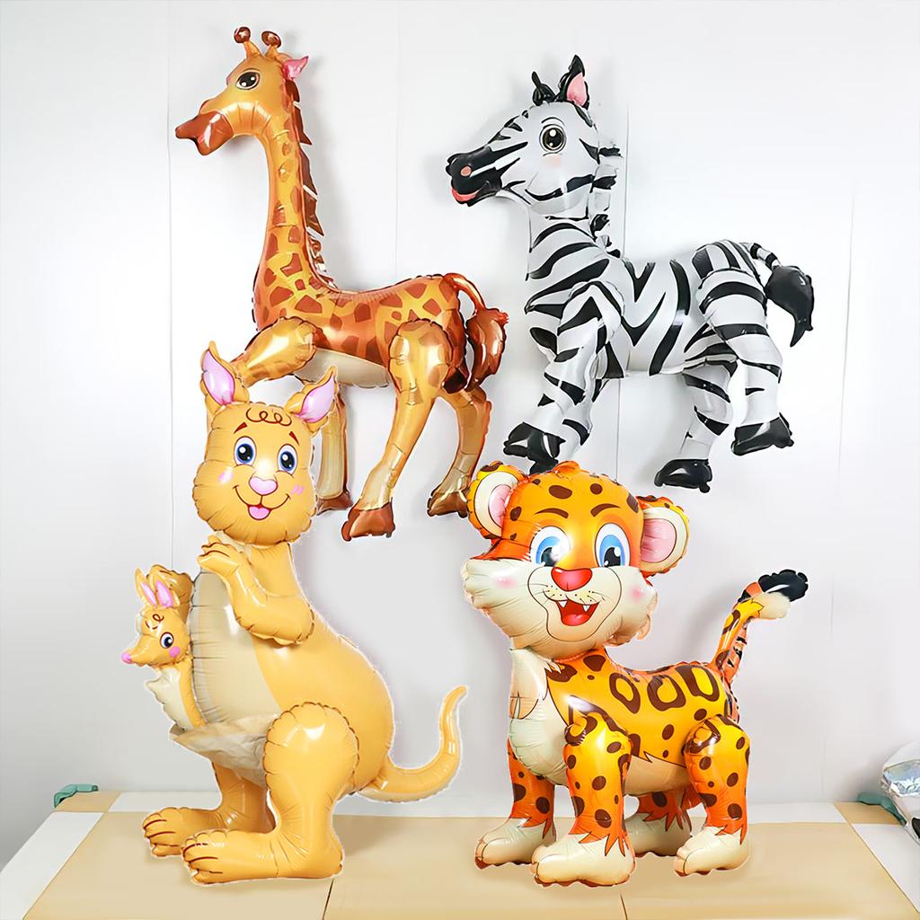 Лесные животные 4d трехмерные воздушные шары для сборки, форма животных джунглей зебра, жираф, кенгуру, леопард воздушный шар на день рождения