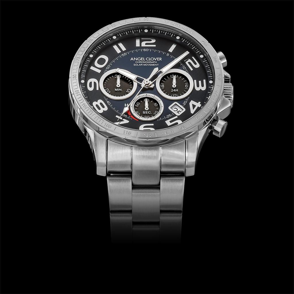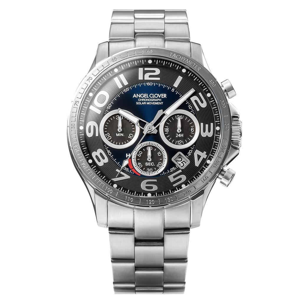 Часы Time Craft Solar Chronograph с сапфировым стеклом, темно-синий циферблат NTCS44SSNV Silver [Angel Clover] для мужчин