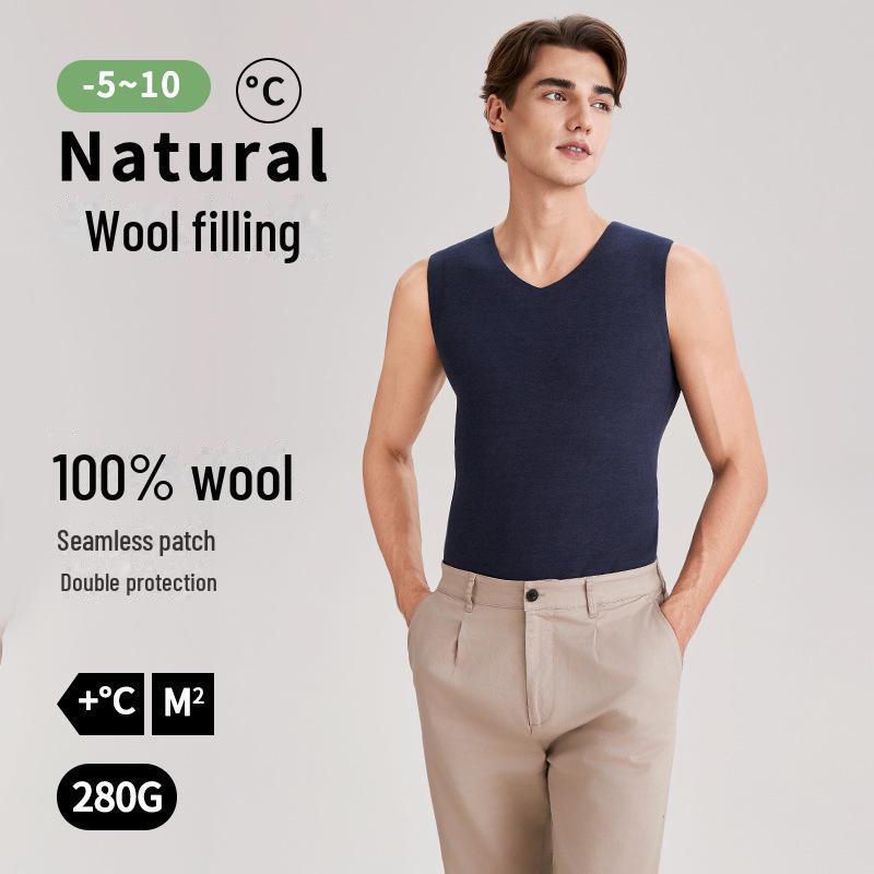 Мужской бесшовный тонкий теплый шерстяной жилет - антибактериальный, отшлифованный для осени и зимы