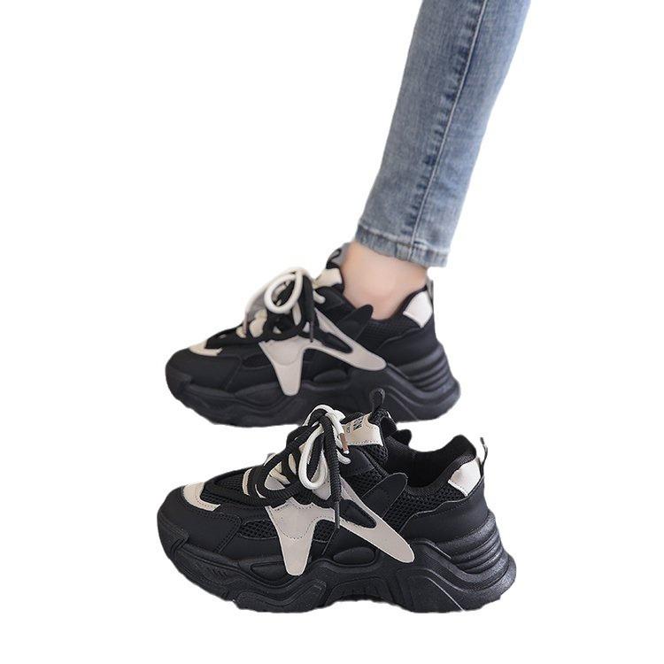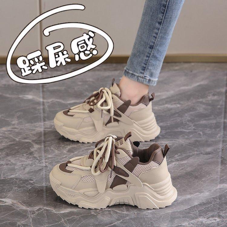Сетчатые дышащие нескользящие туфли для папы с мягкой подошвой, женская новинка 2024 года, толстая подошва, повышенная и маленькая повседневная спортивная обувь