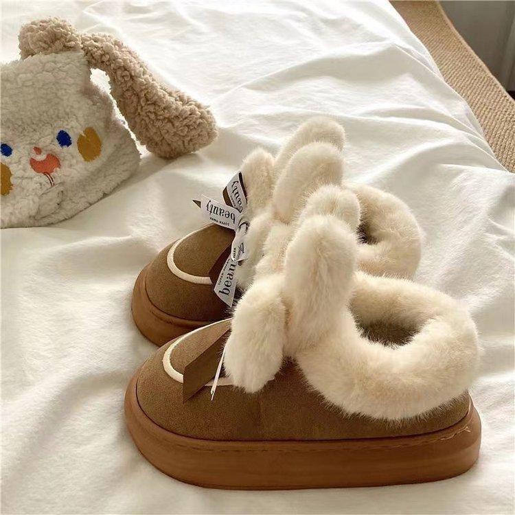 Женские тапочки из хлопка с каблуком-мешком, 2024 г., популярная офисная обувь из бархата, утепленная, морозостойкая и теплая, для женщин