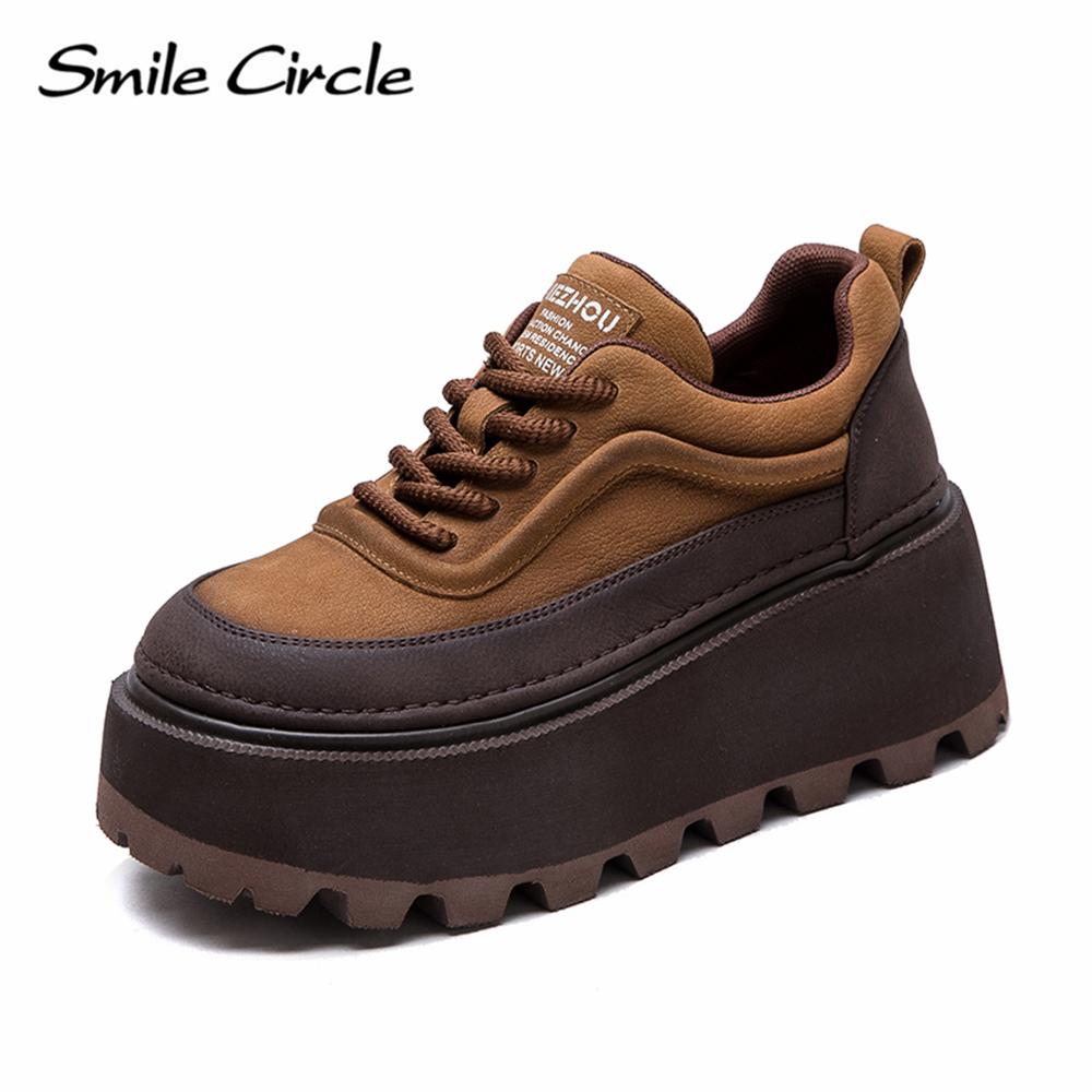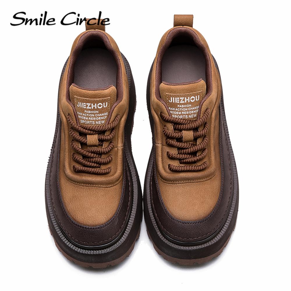 Женская повседневная обувь из натуральной кожи с круглым носком, увеличивающая рост, обувь на толстой подошве, модная удобная обувь на плоской подошве