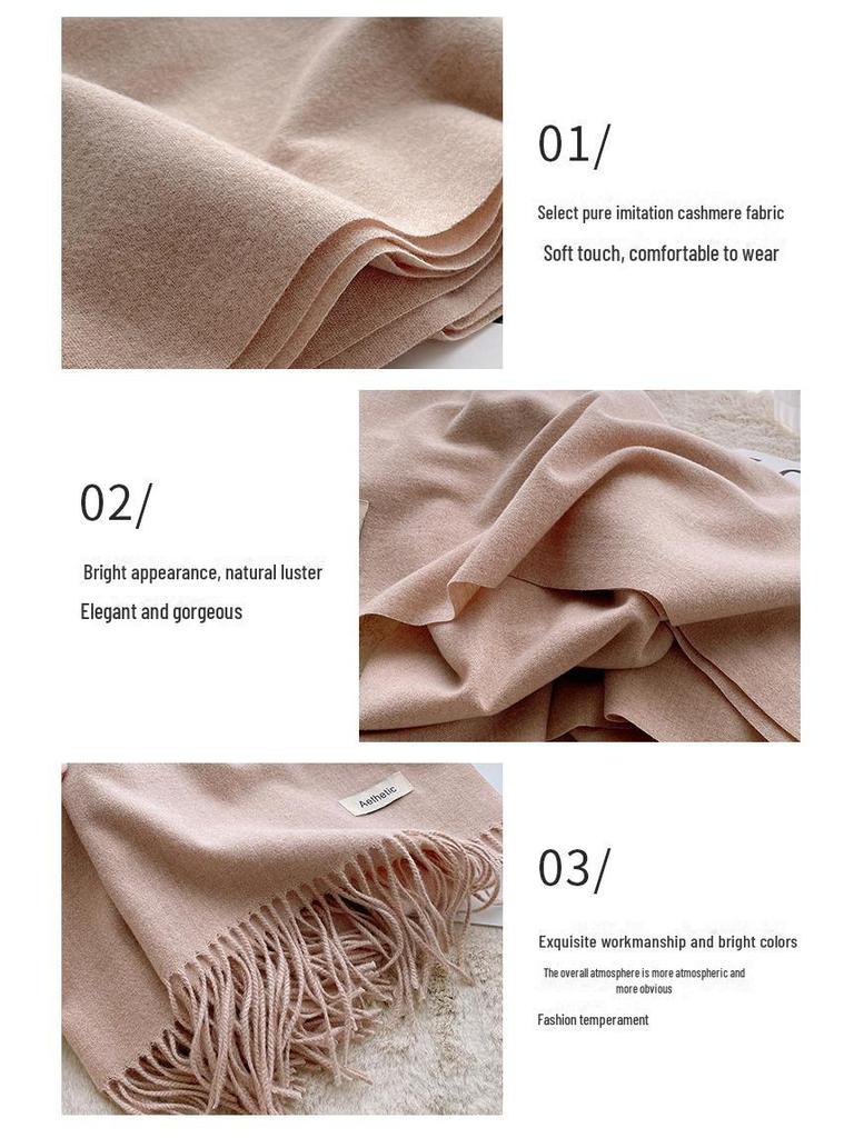 Женский зимний однотонный шарф из искусственного кашемира - теплый, тканый, средний или длинный шарф на шею