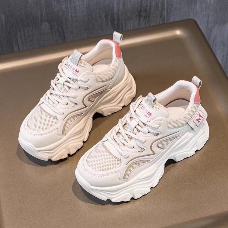 Туфли для папы на толстой подошве, женские, лето 2024, новые популярные высокие белые туфли, сетчатые, дышащие, спортивные, универсальные, повседневные туфли