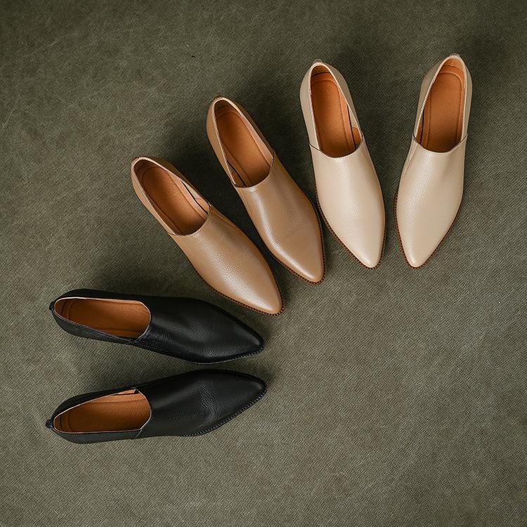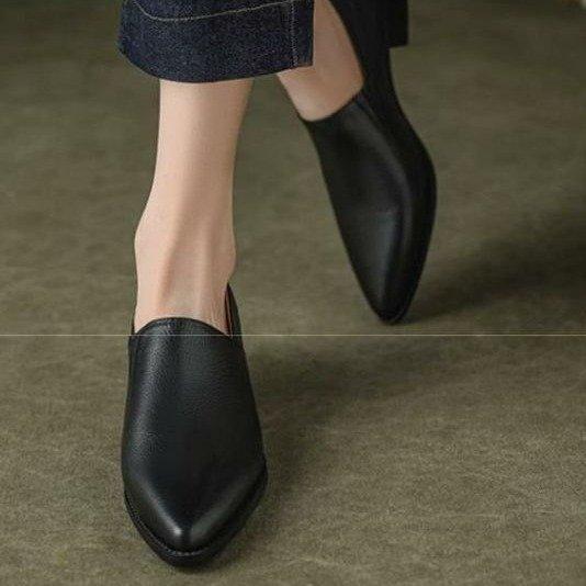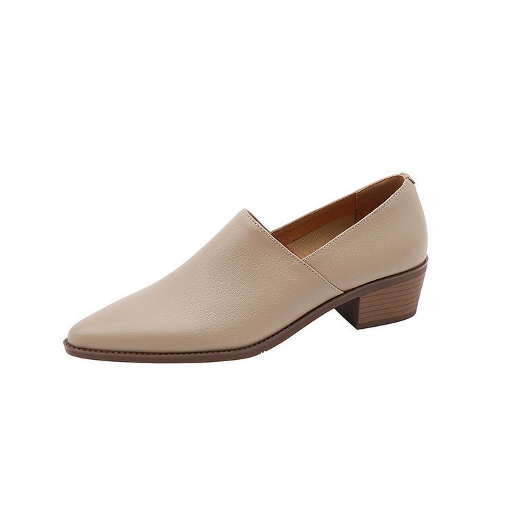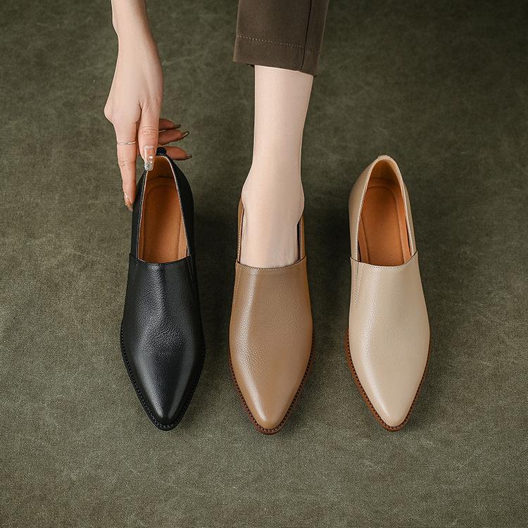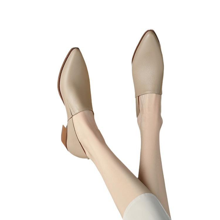 Кожаные туфли с глубоким носком, женские, весна 2024, новые универсальные ретро-туфли с одной педалью, на толстом каблуке, маленькие кожаные туфли