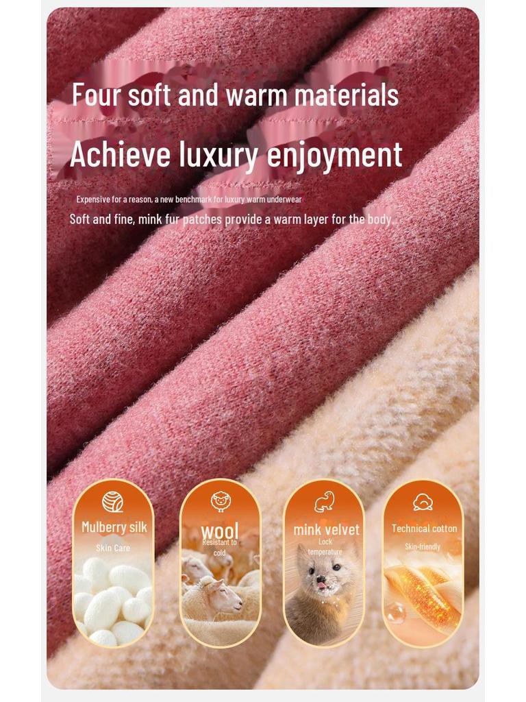 Сохраняйте уют и комфорт в холодные месяцы с этим бесшовным комплектом нижнего белья.. Костюм изготовлен из мягкого норкового бархата, а его мех и ткань выполнены из полиэстера, что обеспечивает тепло и плотное прилегание.. Сплошной узор добавляет элегантности дизайну, а длинные рукава обеспечивают дополнительное тепло.. Кроме того, он антибактериальный, что делает его практичным и гигиеничным выбором для вашего осенне-зимнего гардероба.