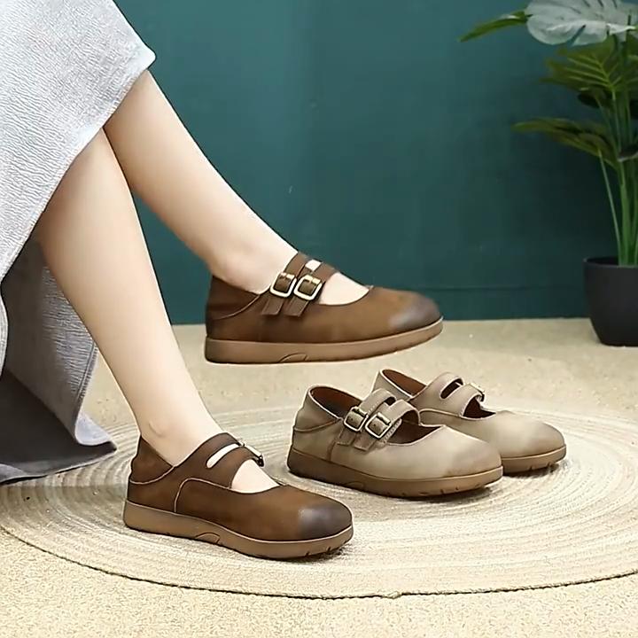 Johnature Retro Мягкая кожа Мягкая подошва Удобные балетки с круглым носком из коровьей кожи Женские туфли для поездок на работу — купить товар онлайн с бесплатной доставкой по всему миру!