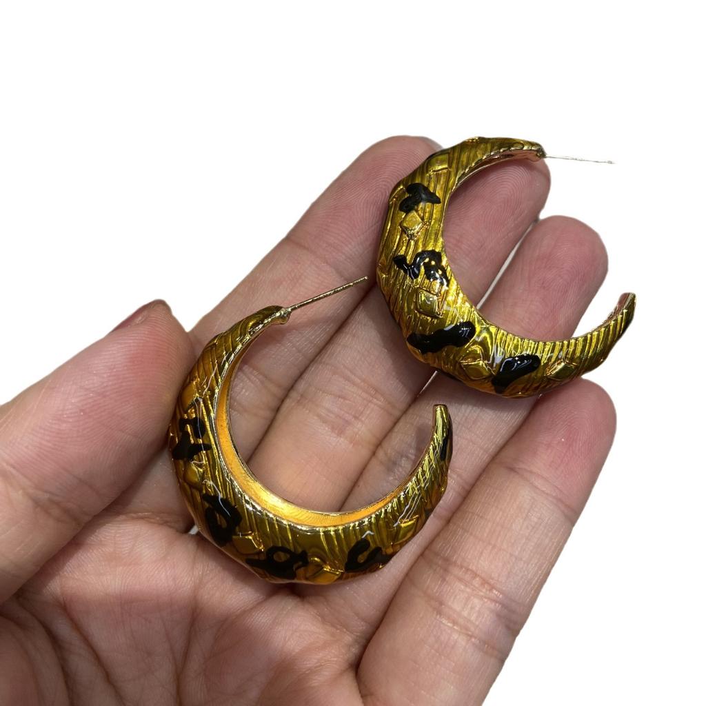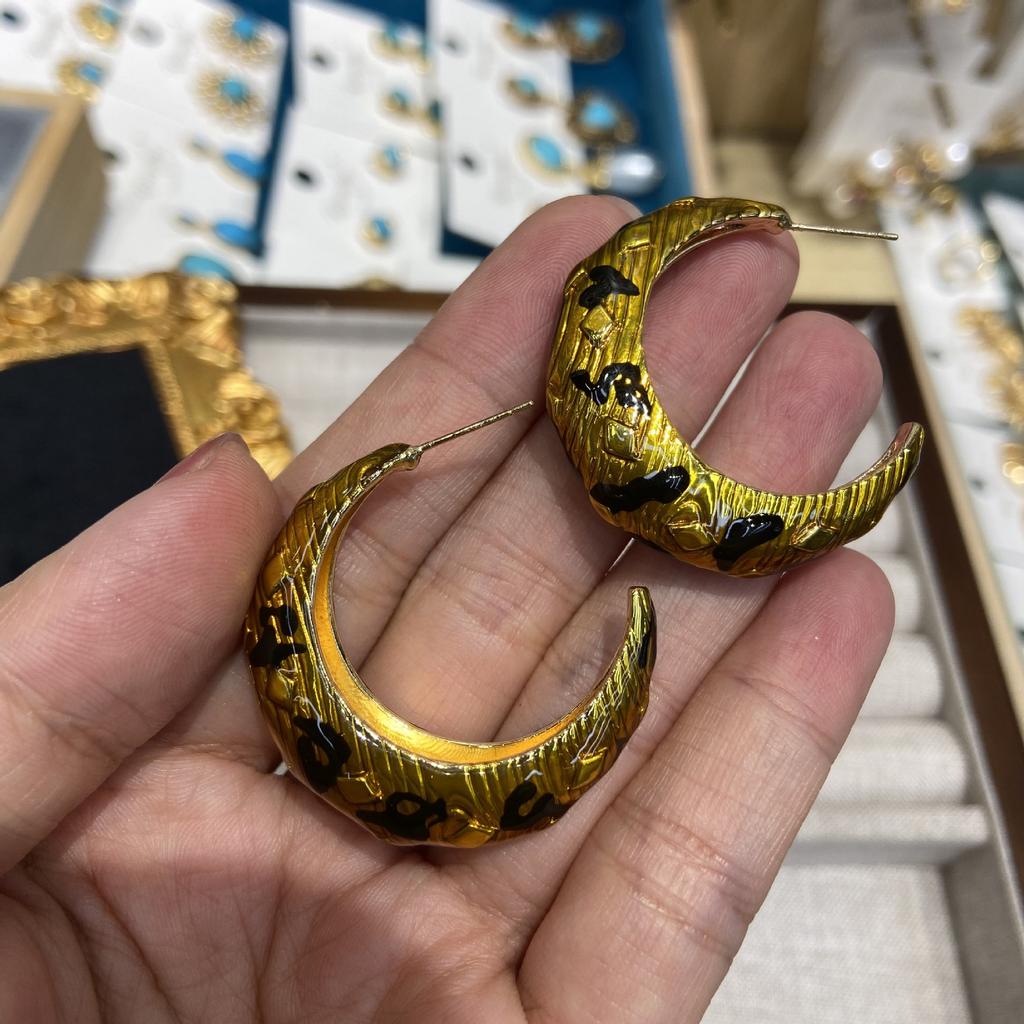 Серьги-полумесяцы из настоящего золота с медным покрытием и эмалью Майяра с леопардовым узором, универсальные классические, легкие, роскошные, высокого класса