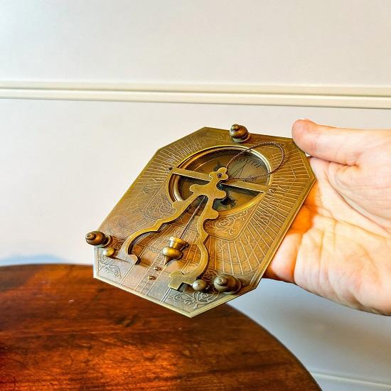 Премиальное мастерство: Эти солнечные часы с маятниковым компасом, изготовленные из высококачественной латуни с потрясающей отделкой под старину, излучают подлинную морскую атмосферу.