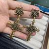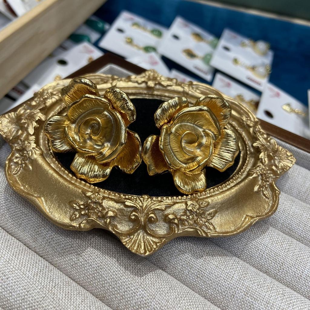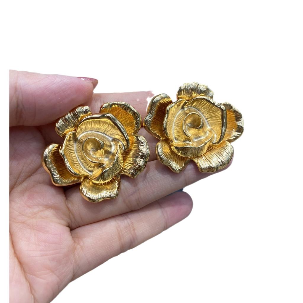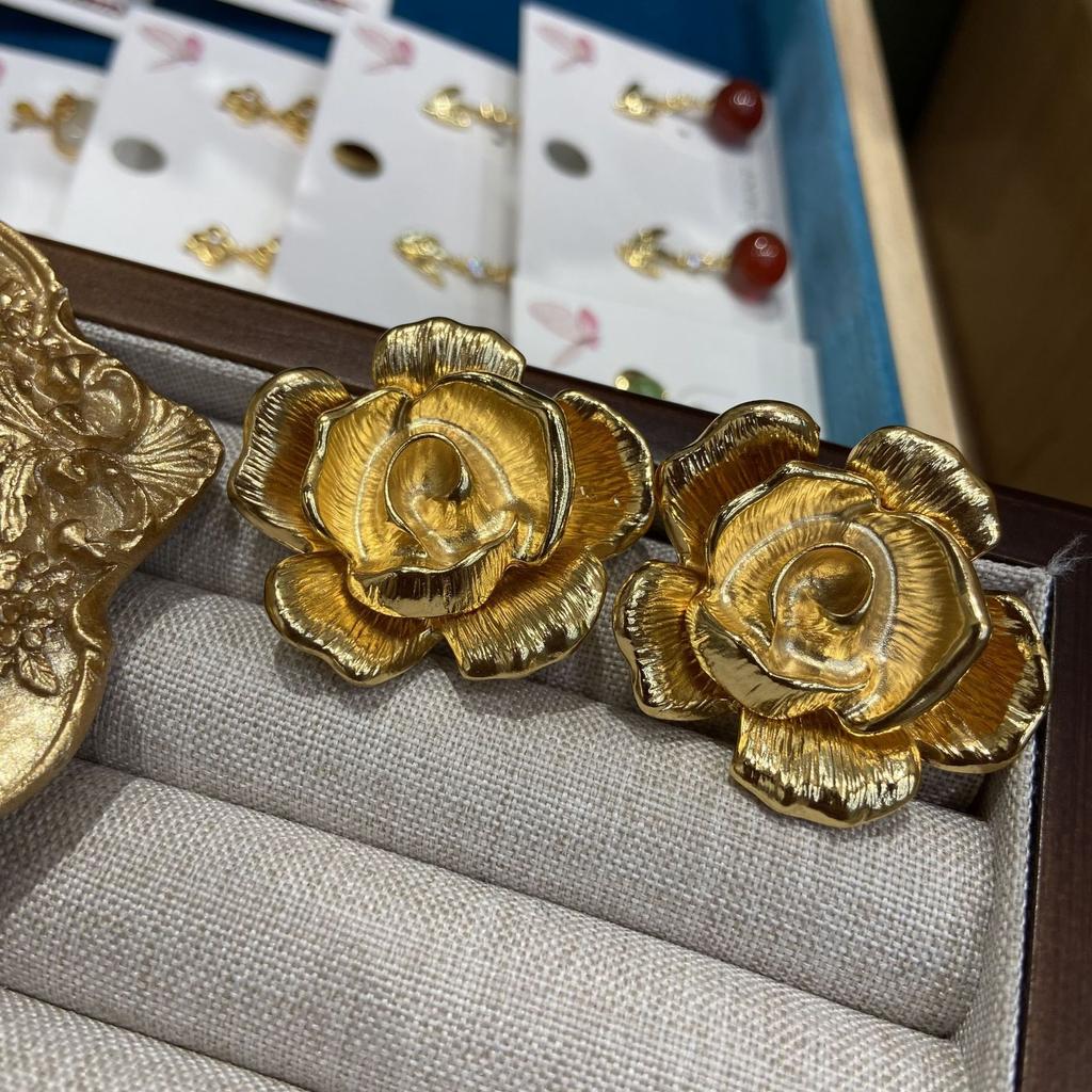 Серьги-гвоздики из золота Xiaoxiangfengsu, серьги-гвоздики в форме розы с трехмерной гравировкой, глянцевые серьги из чистого медного золота с матовым покрытием