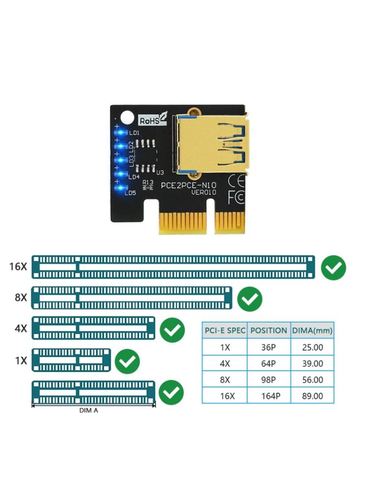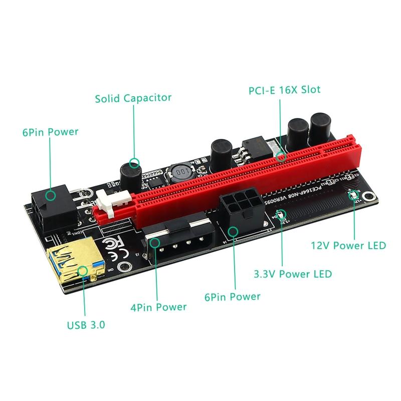 Адаптер PCI-E GPU имеет стабильное сопротивление и имеет 3 светодиода для отображения рабочих состояний.