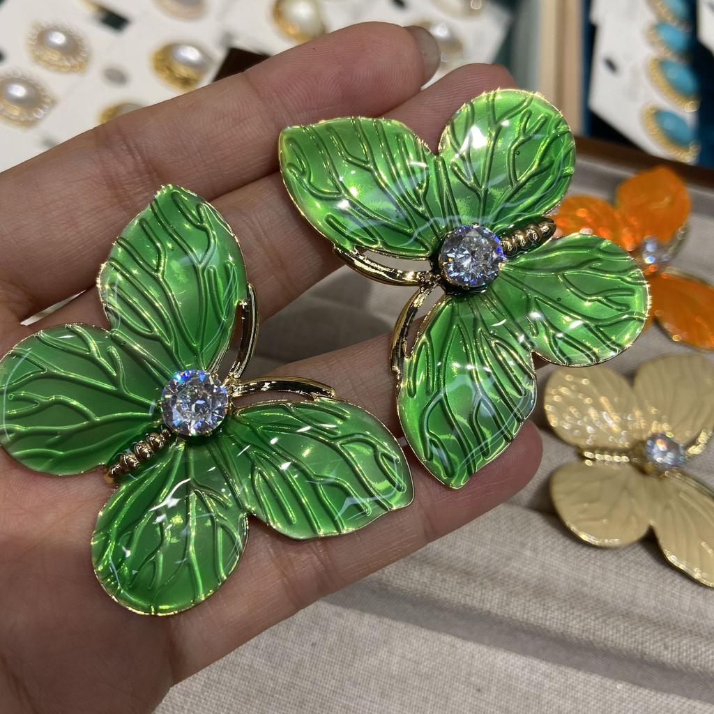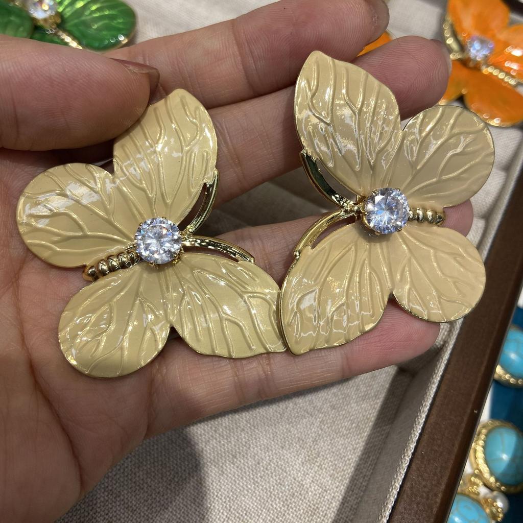 Супер фея ретро масляные капли эмаль бабочка серьги гвоздики женские инкрустированные цирконием насекомые серьги медное покрытие настоящее золото сохранение цвета