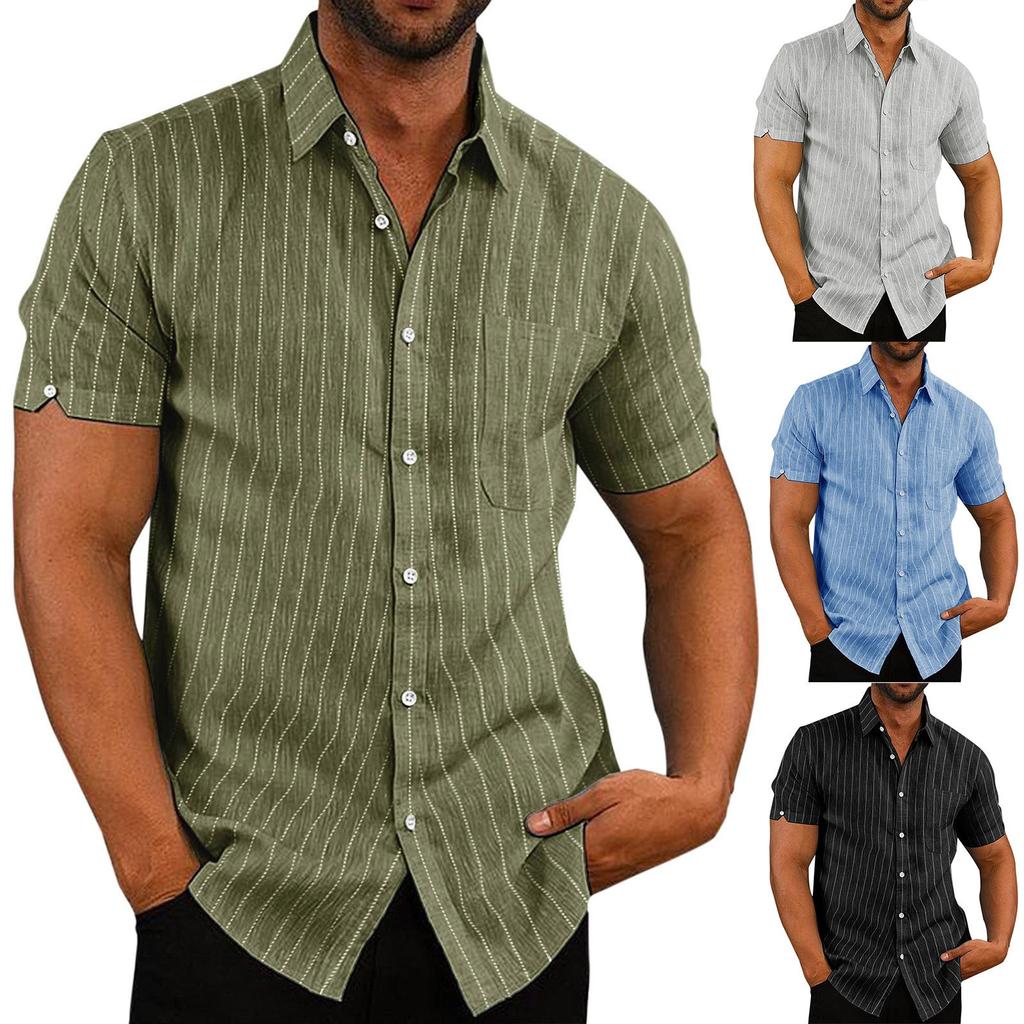 Дизайнерские весенне-летние мужские повседневные хлопковые льняные рубашки с коротким рукавом, свободные рубашки
