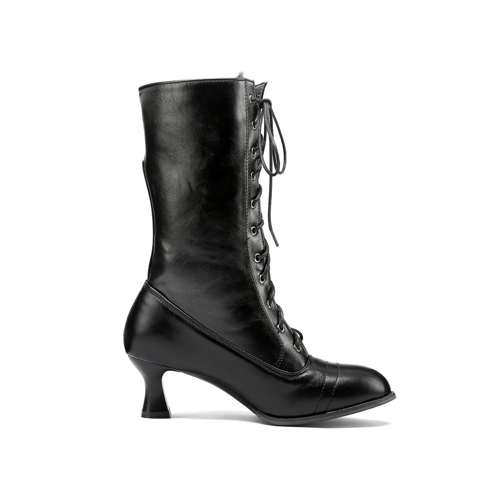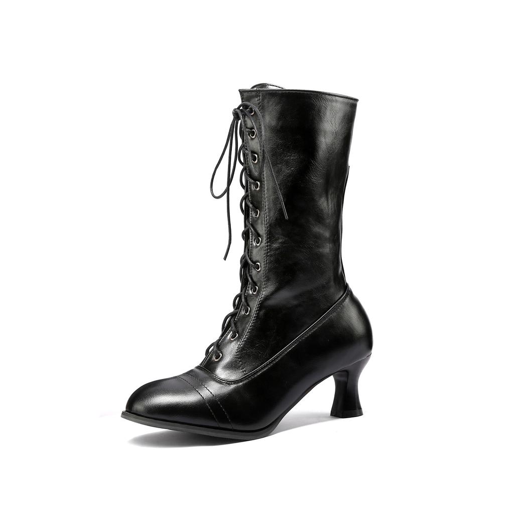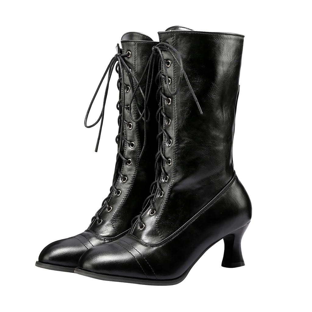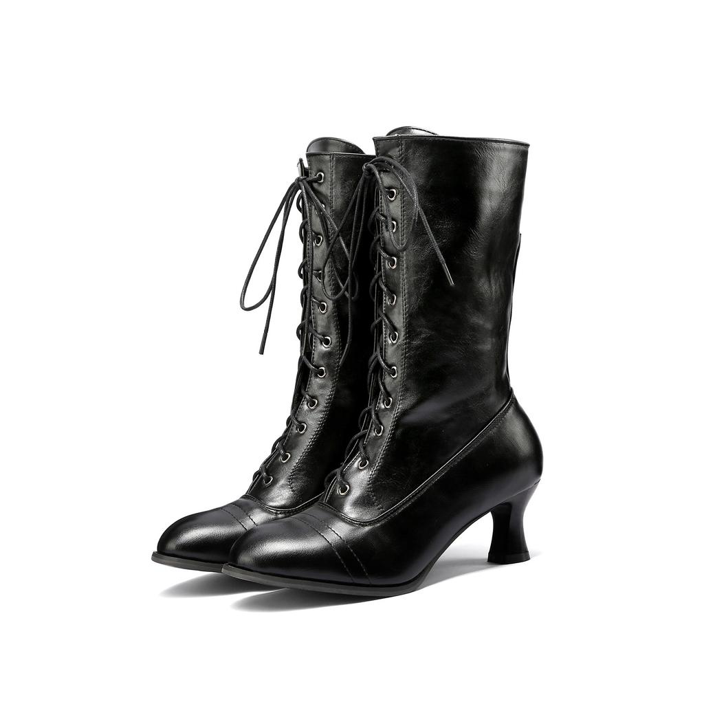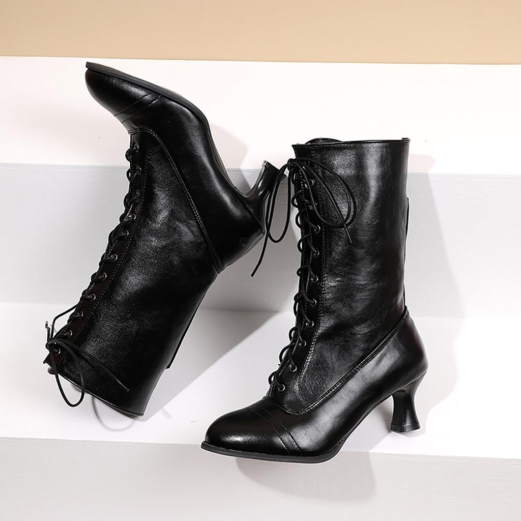 Винтажные сапоги Короткие сапоги Ботинки среднего размера на толстом высоком каблуке Женские сапоги