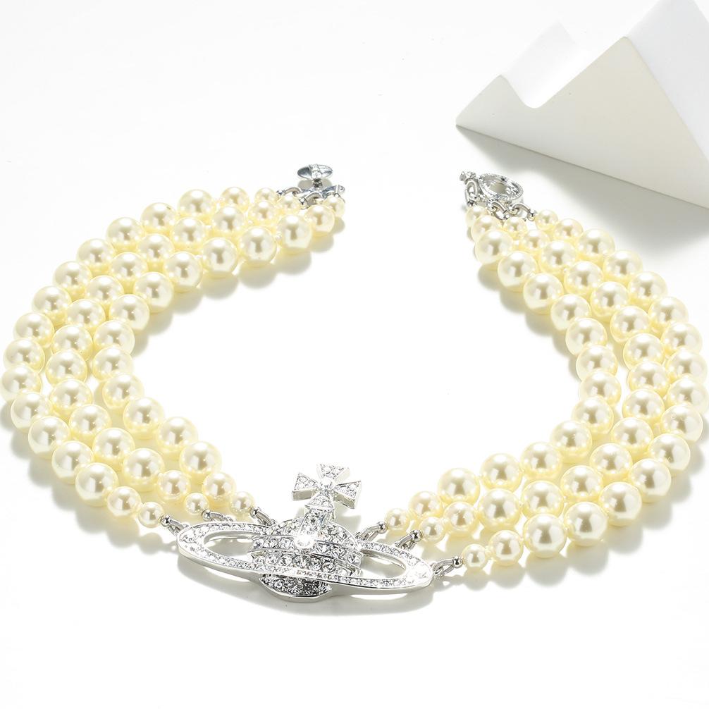 Трехслойное жемчужное ожерелье Queen Mother West, полная бриллиантовая цепочка на ключицу Saturn, легкое, роскошное, простое, универсальное, высококачественное ожерелье