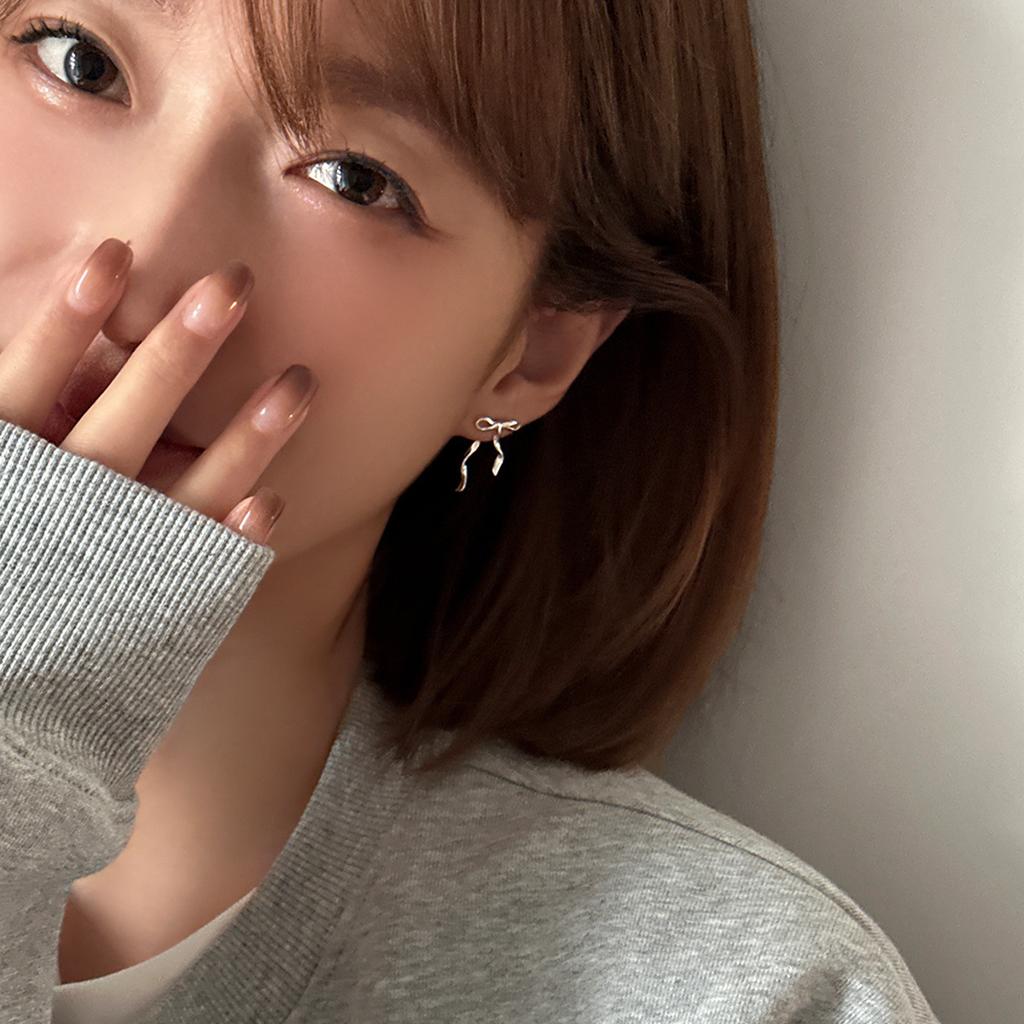Silver needle ribbon bow stud earrings Mori series sweet little fragrant earrings niche high-end spring new earrings