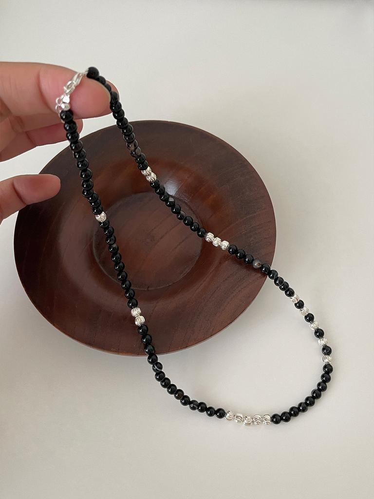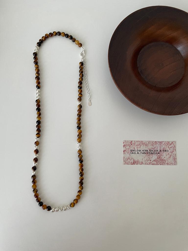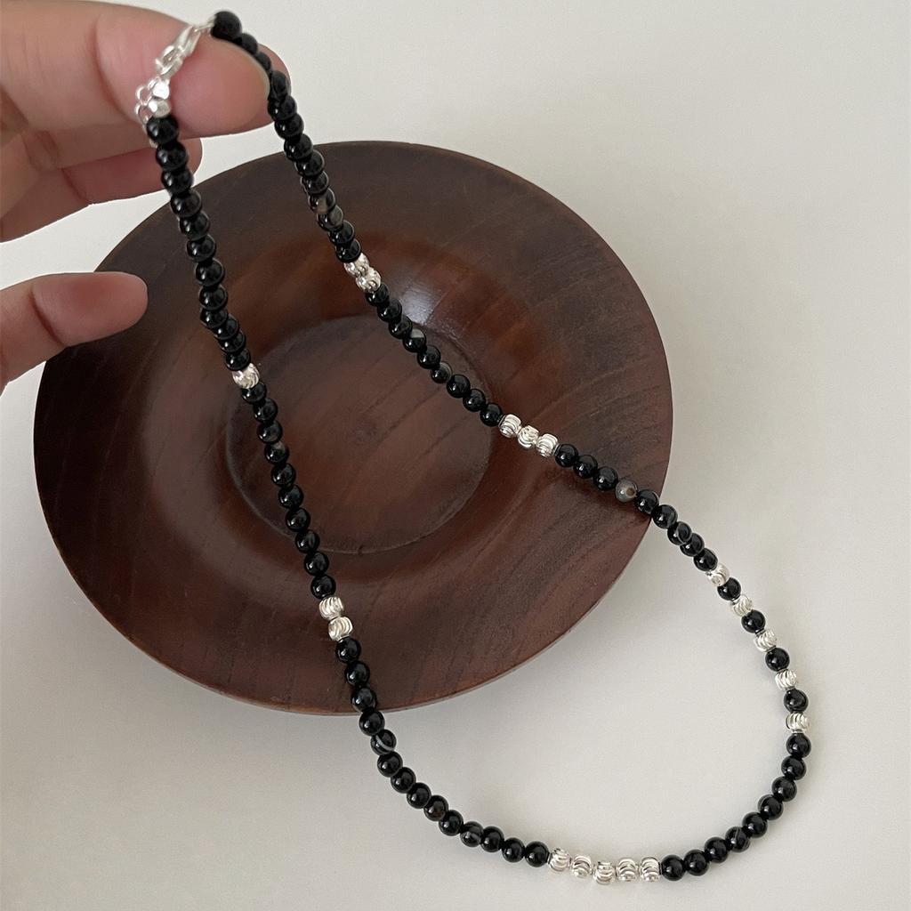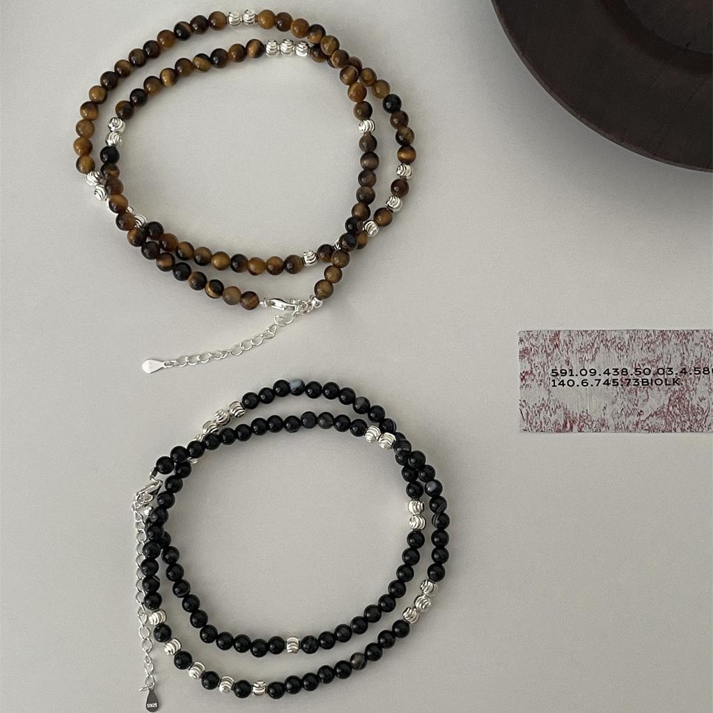Ожерелье из круглых бусин из стерлингового серебра 925 пробы, женская цепочка на ключицу из черного агата в стиле ретро, модная цепочка на шею из камня тигровый глаз