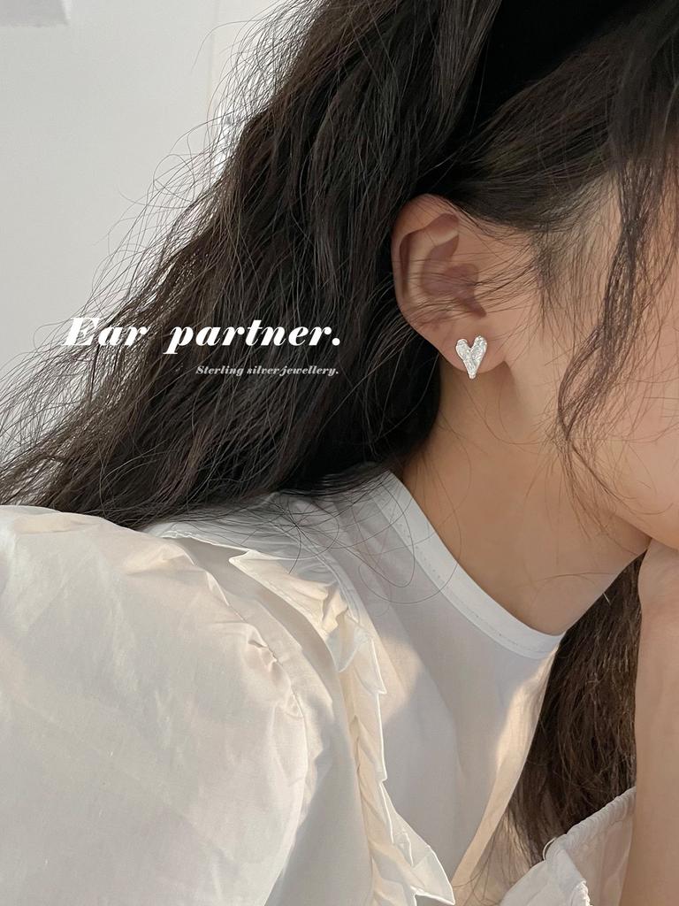 Неровная текстура серьги-гвоздики любовь женские простые индивидуальные нишевые темперамент расширенный смысл 925 серебряные игольчатые украшения