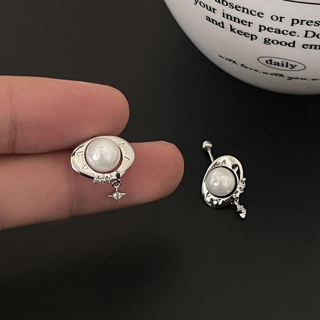 925 Silver Needle Planet Zircon Earrings Women's Simple ins Wind Pearl Earrings Niche Design Ear Jewelry