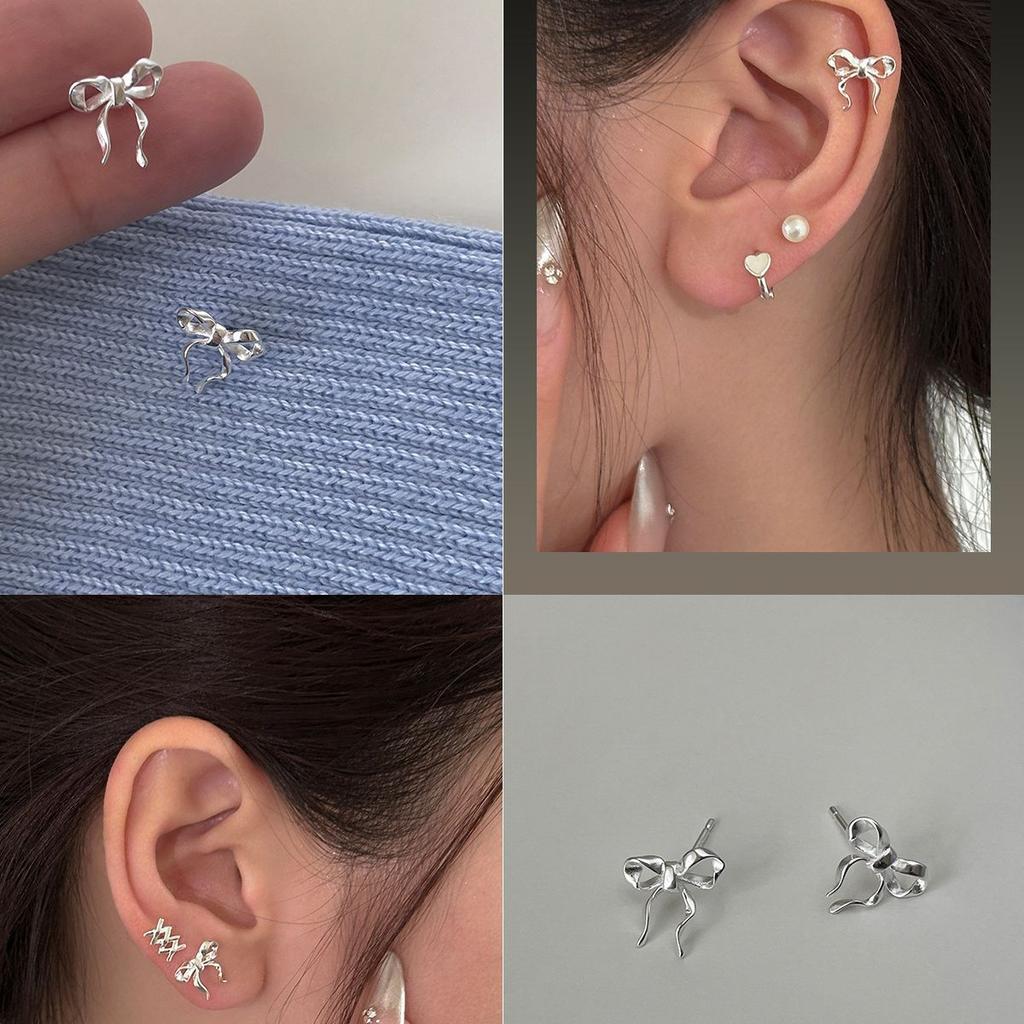 Серьги-пусеты в виде бантиков из стерлингового серебра 999 пробы, женские, легкая роскошь, изысканные, нишевые, персонализированные серьги, высококлассные осенние новые серьги