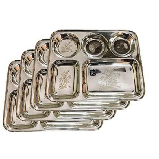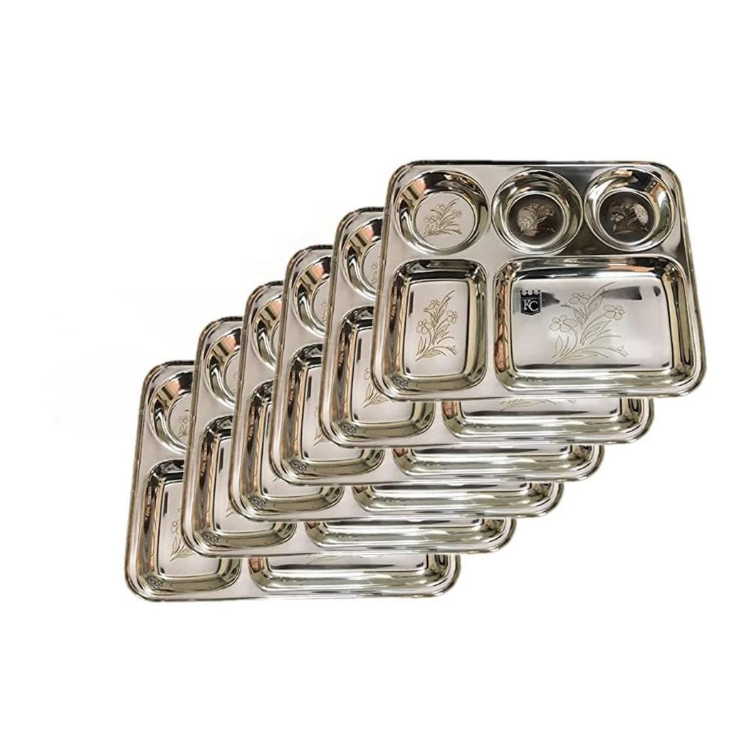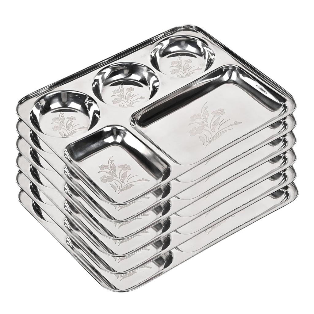 Разделительная пластина из нержавеющей стали с лазерным узором 5 в 1 / Bhojan Thali/Набор из 6 обеденных тарелок