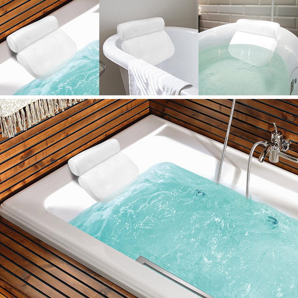 Дышащая гидромассажная подушка для ванны, подушка для головы, нескользящая, для поддержки шеи и спины с присосками, 3D-сетка
