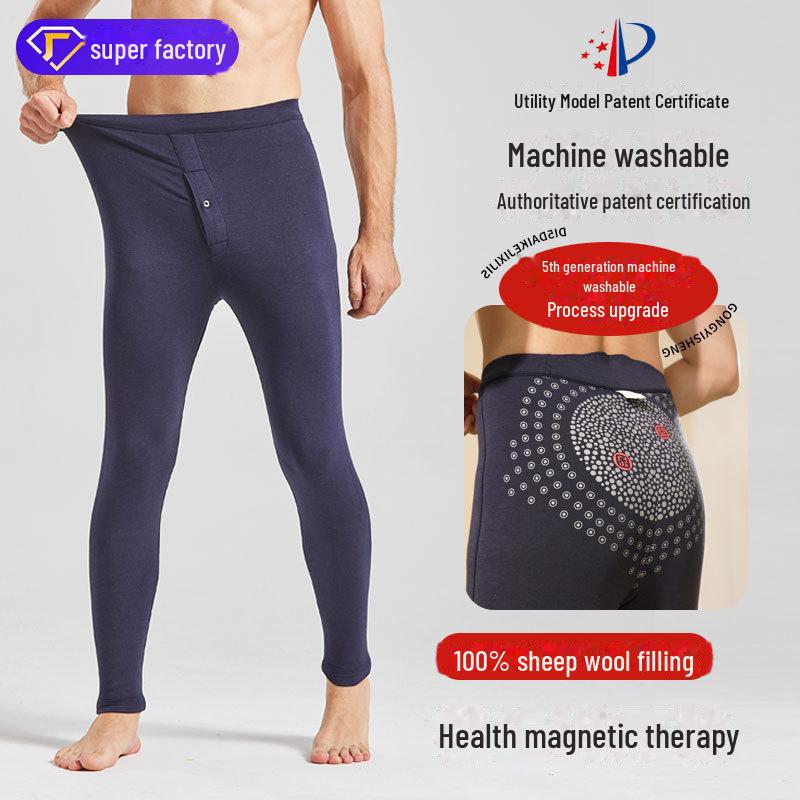 Мужские брюки с высокой талией из смеси хлопка и шерсти для магнитной терапии — утолщенные, отшлифованные, пригодные для машинной стирки, для тепла осенью/зимой.