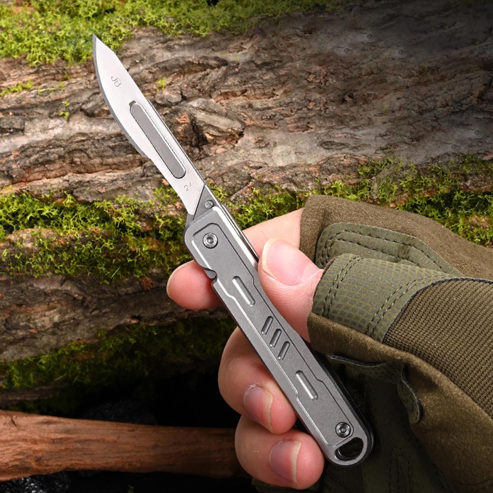 Small Keychain Knife Mini Folding Pocket Knife With 10pcs Replaceable Surgical Blades Scalpels Utility Knives EDC Box Cutter