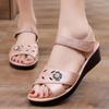 Сандалии со стразами на липучке: Модная, дышащая летняя обувь для женщин среднего возраста и пожилых бабушек.
