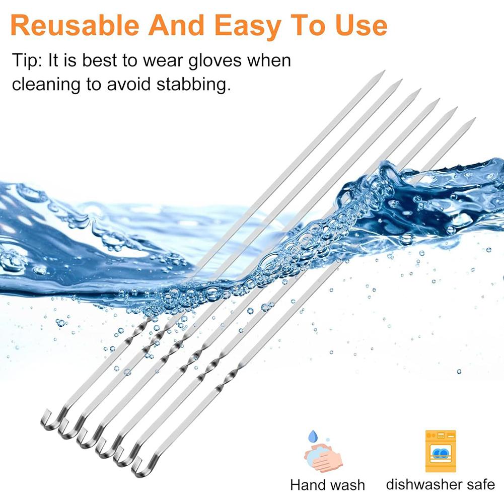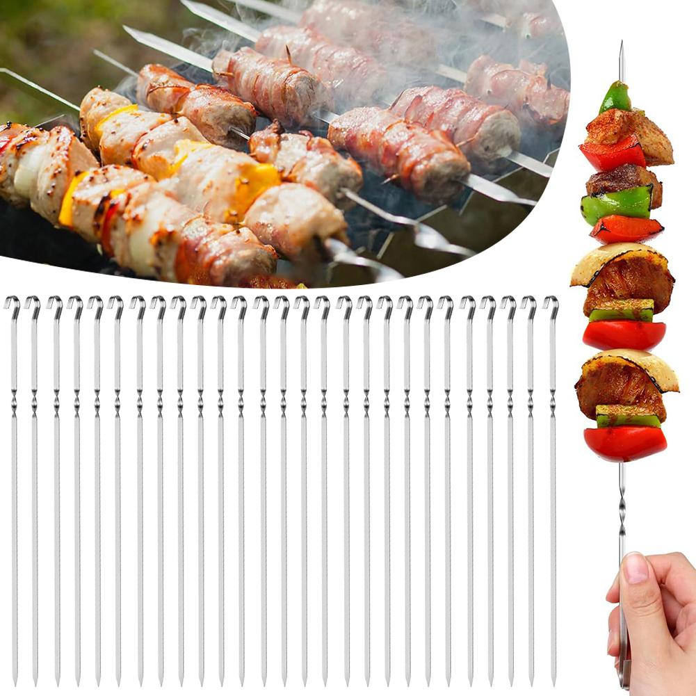 25 шт. плоских шампуров для шашлыка с крючком из нержавеющей стали, длинные решетки для барбекю, для кемпинга, пикника, мяса, палочек для барбекю